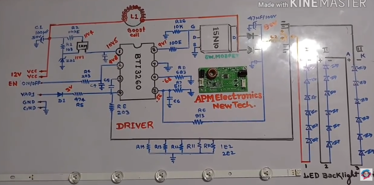 Here is a youtube video with an unfortunate amount of glare in it that lists the schematic of the driver board I used: