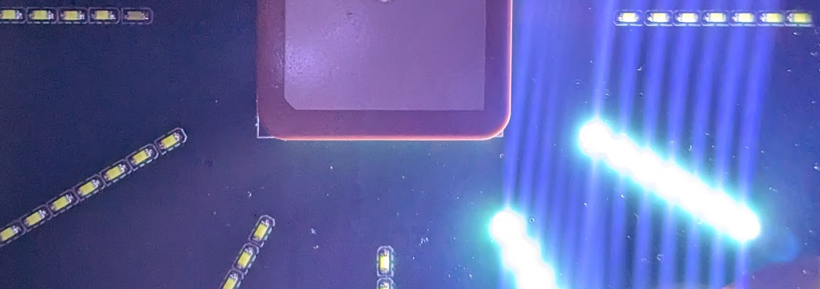 However it appears my eyes tell a lie - The the overall rotational speed of the pattern itself is clearly visible, but the interpolation between adjacenet LED’s is not. The LED is in the corner of the PCB, and so the brighness varies periodically as the pattern rotates: