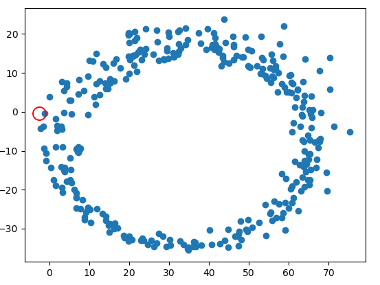 Problem: A stationary GPS signal wanders around at about walking speed, so you will accumulate many km of distance with the pcb just sitting on the desk. I tried to mitigate this in a similar way to the magnetometer calibration by having a buffer of N lat/long pairs, and only incrementing the distance travelled if the new lat/long is far away from every single other element in the buffer. That way if the position wandered around without too much drift, the wandering positions would not accumulate.
