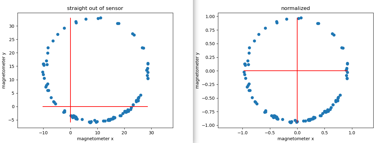 If there was no bias remaining, the compass measurements would be centered around the origin.