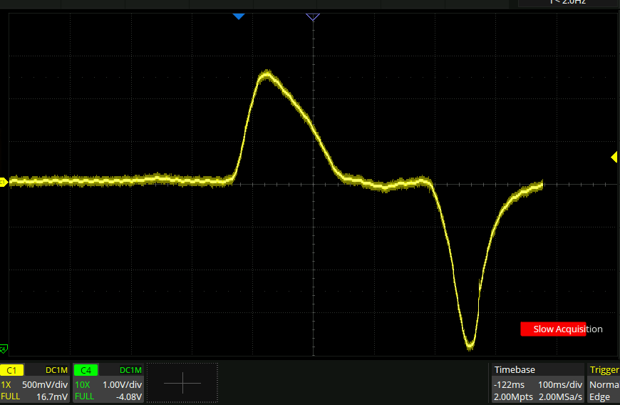 So with the 1Mohm scope input, the time constant is ~50ms apparantly.